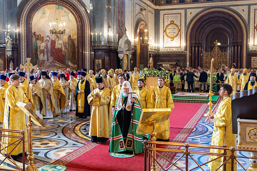 По завершении богослужения Предстоятель обратился к пастве с Первосвятительским словом, в котором благословил верующих на начало общегородского крестного хода по историческому маршруту: от кафедрального собора до Новодевичьего ставропигиального монастыря. Возглавив шествие, патриарх вместе с десятками тысяч верующих прошел по улицам Москвы с молебным пением Московским чудотворцам и угодникам Божиим.