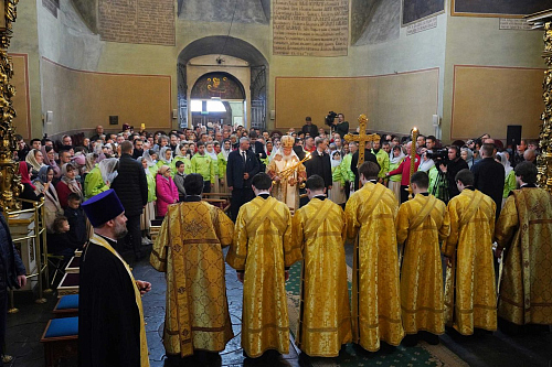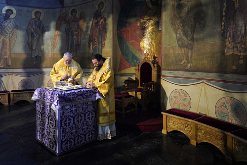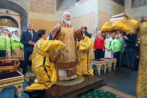 На сугубой ектении были вознесены особые прошения, Предстоятель Русской Православной Церкви прочитал молитву о Святой Руси.