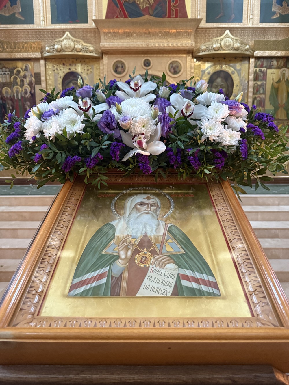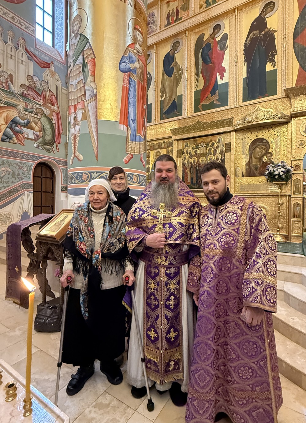 В завершение настоятель храма обратился к собравшимся с проповедью и словами поздравления. Затем иерей Иоанн поздравил именинников, в честь которых было исполнено многолетие.