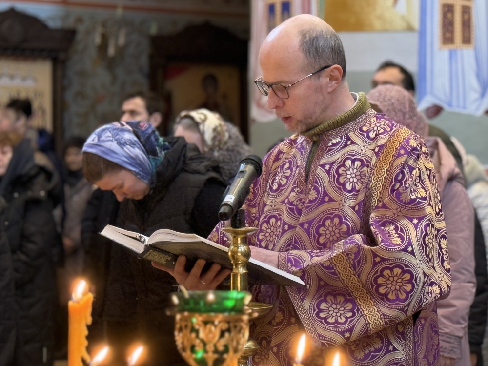 Всенощное бдение совершил настоятель храма иерей Иоанн Омелянчук в сослужении духовенства храма и клирика Кафедрального соборного Храма Христа Спасителя диакона Иоанна Клинцова.