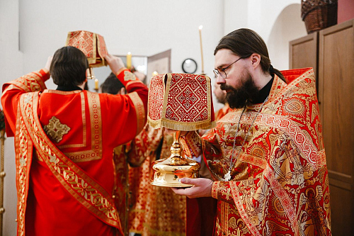4 января 2024 года, в Престольный праздник храма Святой великомученицы Анастасии Узорешительницы, и.о. настоятеля храма Святой великомученицы Анастасии Узорешительницы иерей Димитрий Борсук совершил Божественную Литургию в храме Калужской иконы Божией Матери, который входит в состав храмового комплекса Великомученицы Анастасии Узорешительницы в Теплом Стане.