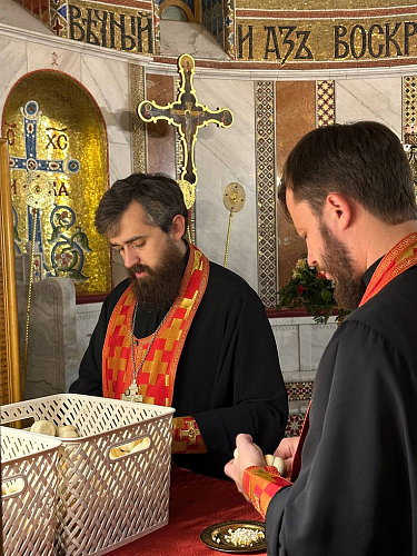 Проповедь перед причастием произнес клирик Покровского храма иерей Алексей Котельников.