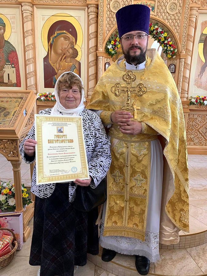 После Крестного хода настоятелем храма иереем Илией Власовым были вручены памятные грамоты и произнесены слова благодарности всем, кто принимал активное участие в приходской жизни, строительстве, благоукрашении храма, а так же в подготовке храма к предстоящему Великому освящению.