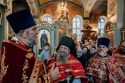 В завершение богослужения были совершены Крестный ход и славление Святой Великомученице Параскеве Пятнице, после чего настоятель обратился к духовенству и прихожанам с приветственным словом и произнес проповедь. Архимандрит Мелхиседек (Артюхин), от лица духовенства Параскево-Пятницкого благочиния, поздравил протоиерея Анатолия Кожу и всех молящихся с днем небесной покровительницы.