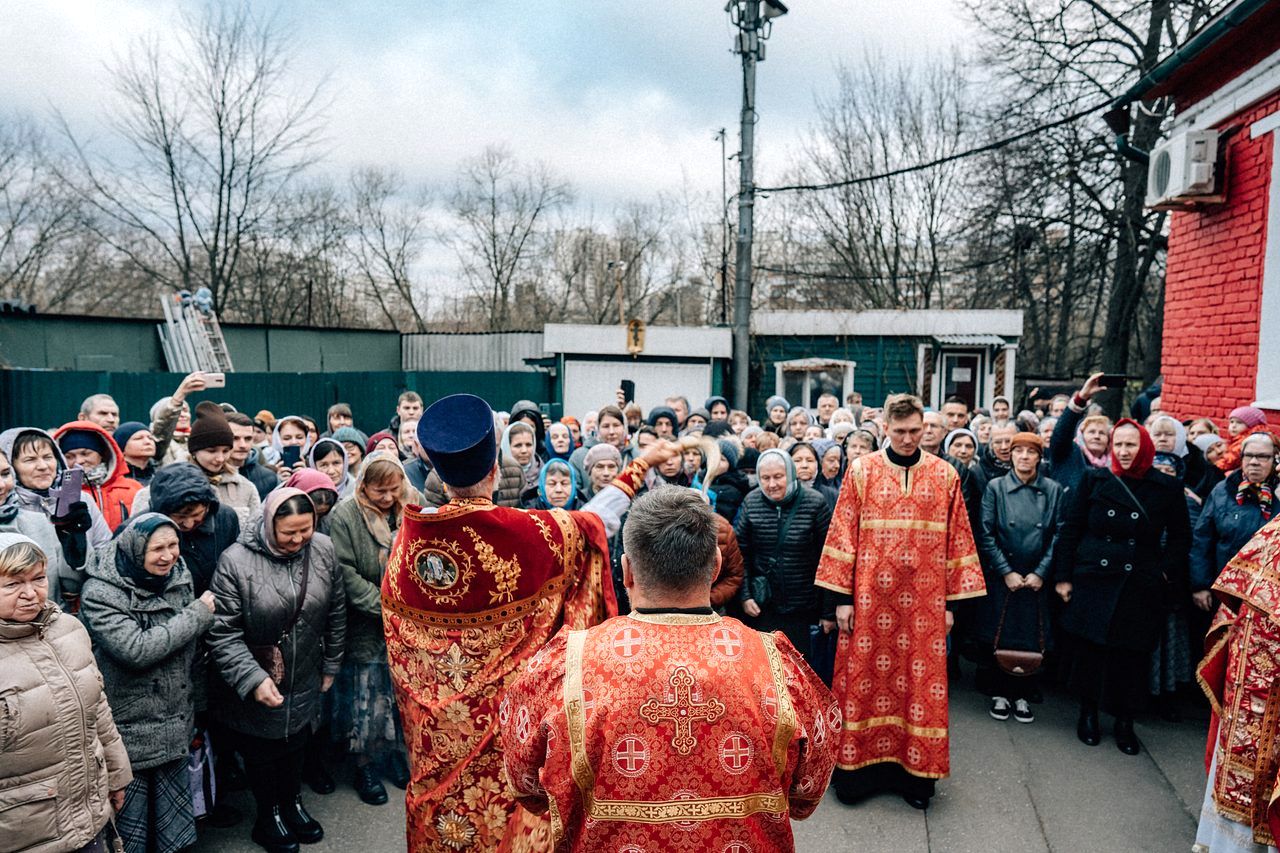 Богослужение возглавил настоятель храма протоиерей Анатолий Кожа, которому сослужило духовенство Параскево-Пятницкого благочиния: архимандрит Мелхиседек (Артюхин), настоятель храма Покрова Пресвятой Богородицы в Ясенево, иерей Виталий Никишин, настоятель храма Святителя Алексия, митрополита Московского, чудотворца в Северном Бутове, иерей Димитрий Самсонов, и.о. настоятеля храма Святителя Стефана Пермского в Южном Бутове, диакон Григорий Богданов, клирик храма Великомученицы Параскевы Пятницы в Качалове.