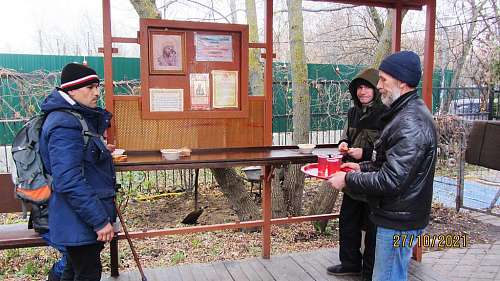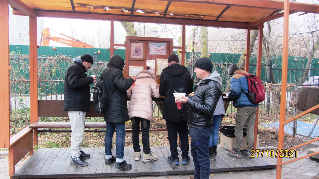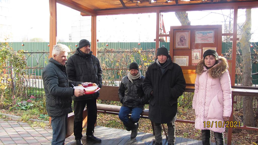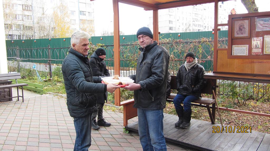 В октябре 2021 года социальной службой храма Священномученика Серафима, митрополита Петроградского в Южном Бутове, по благословению настоятеля храма иерея Максима Глухих, была оказана помощь бездомным людям, нуждающимся в горячей еде.