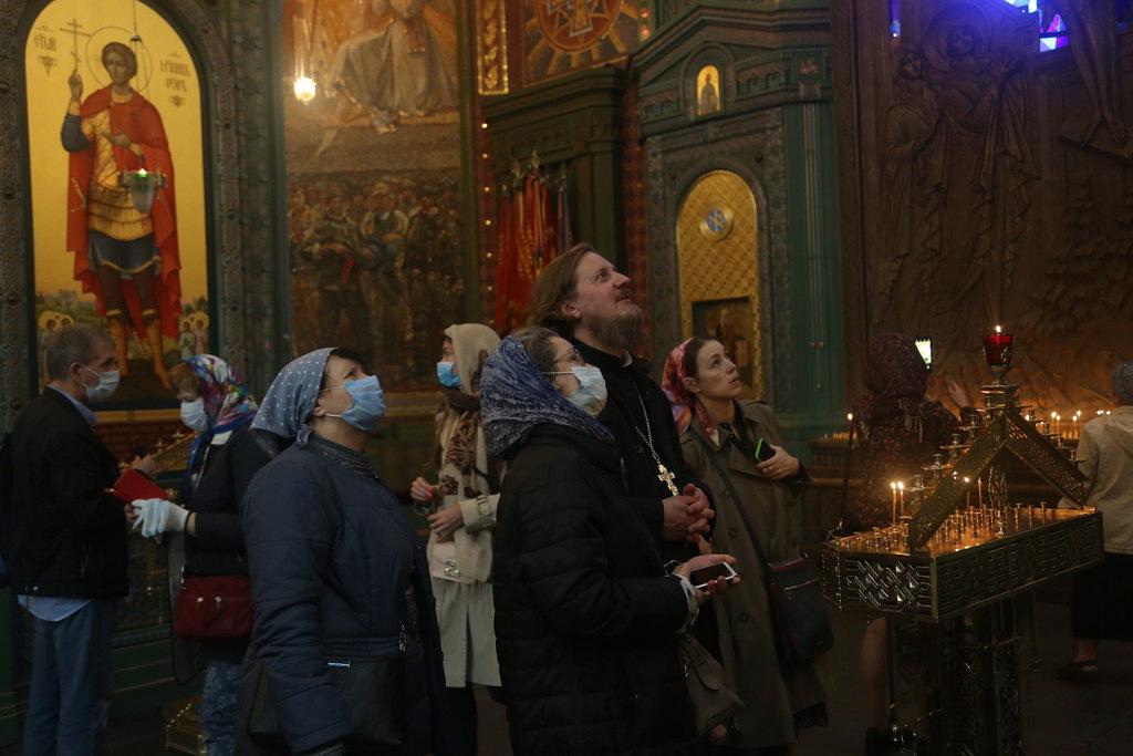 Верующие посетили верхний (во имя Воскресения Христова) и нижний (освящен в честь Святого Равноапостольного Великого князя Владимира) храмы, а так же музейный комплекс «Дорога памяти», где представлен каждый день войны.