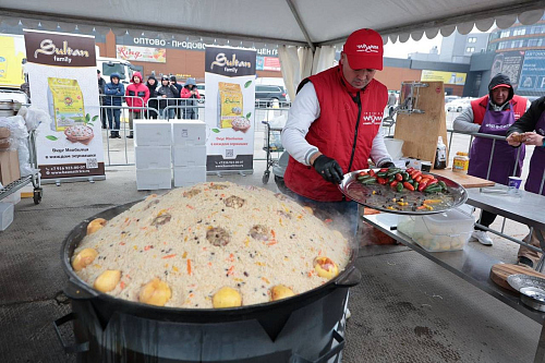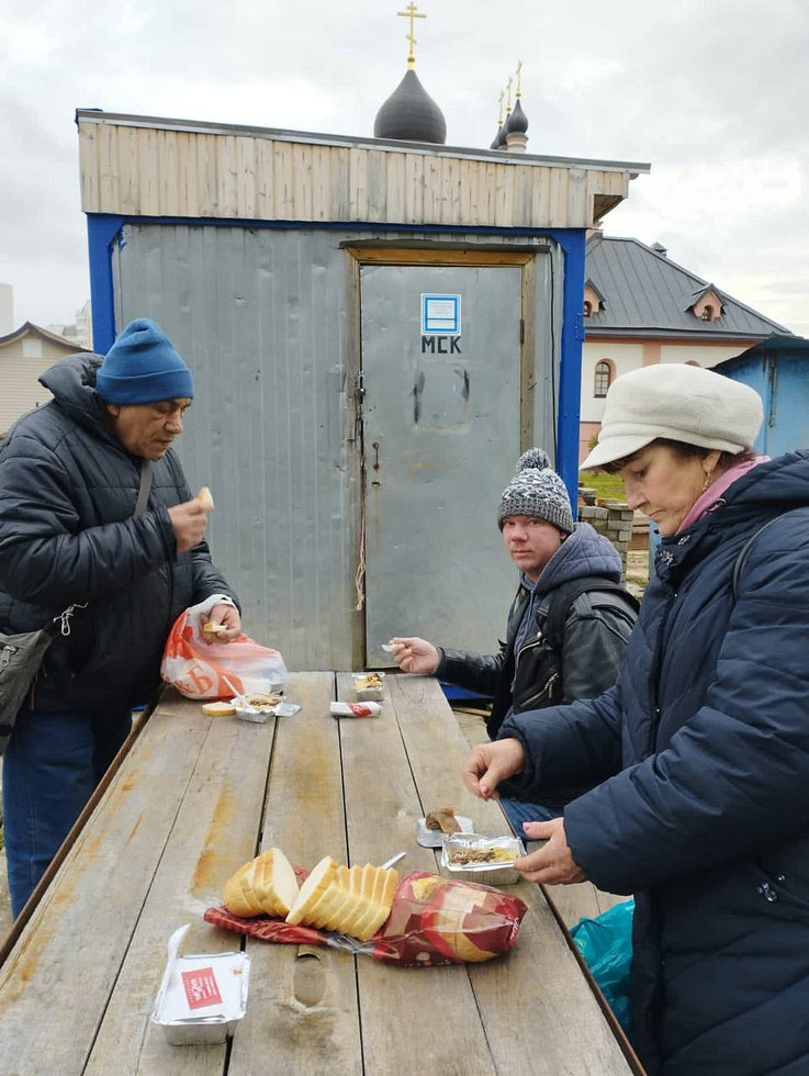 Половина этого казана стала угощением для всех гостей праздника, а другая часть была пожертвована организаторами на благотворительное питание неимущих. Волонтеры приходских социальных служб раздали нуждающимся и бездомным людям больше 100 кг горячей и сытной пищи.
