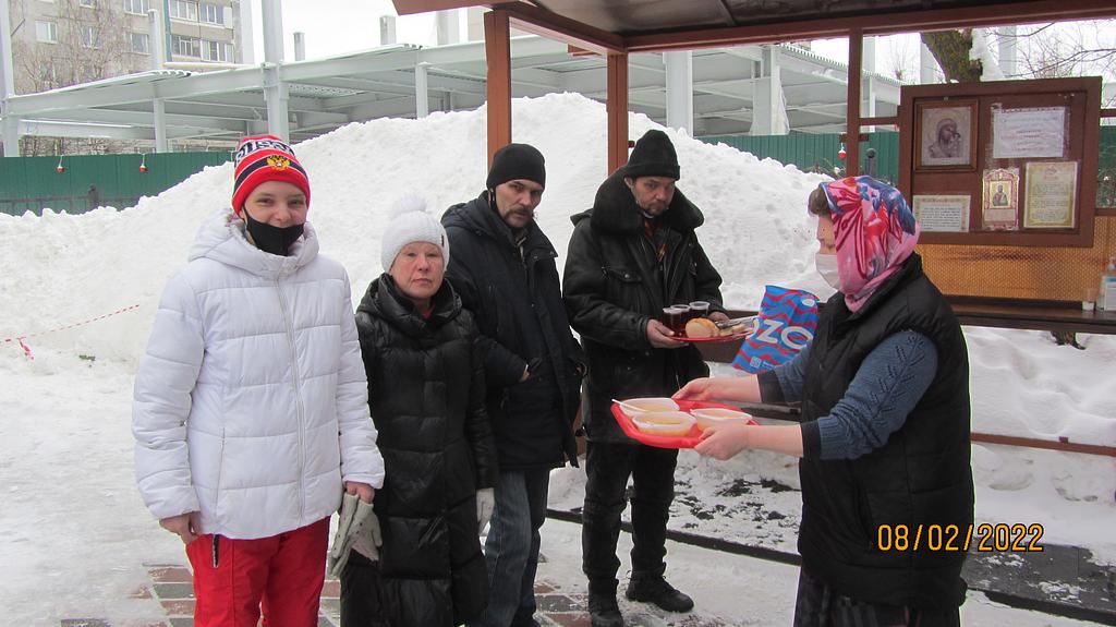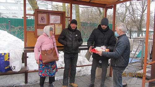 В феврале 2021 года социальной службой храма священномученика Серафима, митрополита Петроградского в Южном Бутове, по благословению настоятеля храма иерея Максима Глухих, была оказана помощь бездомным людям, нуждающимся вгорячей еде.