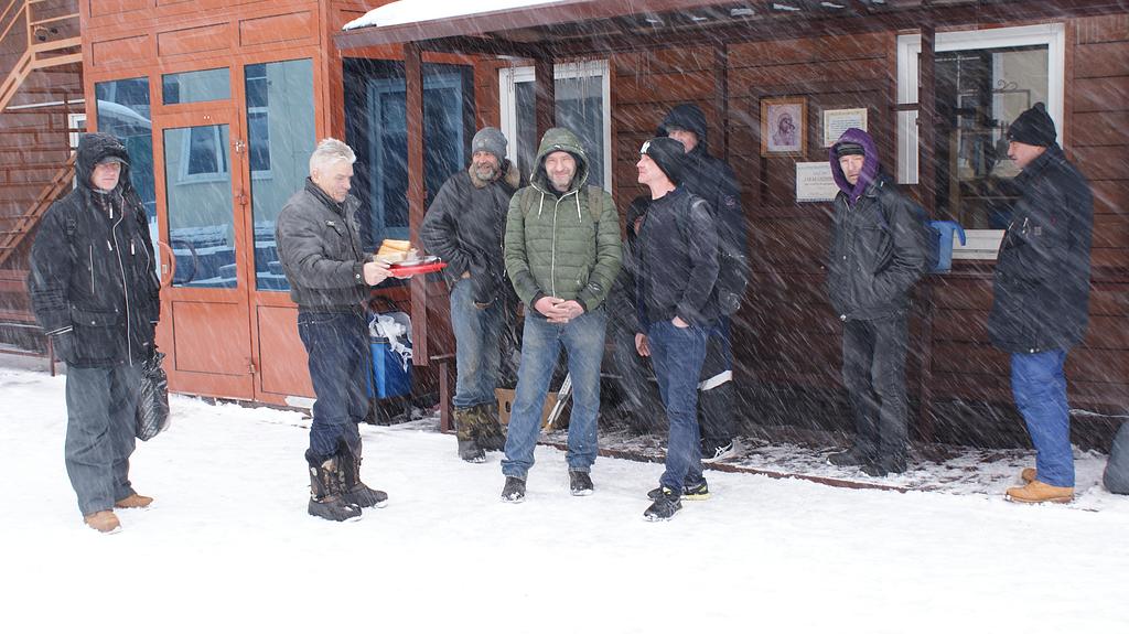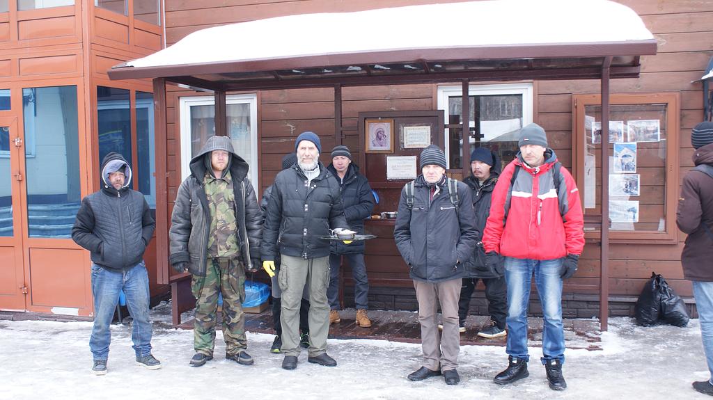 При этом с бездомными волонтеры проводят беседы о Православной вере, пред трапезой совершают молитвы.