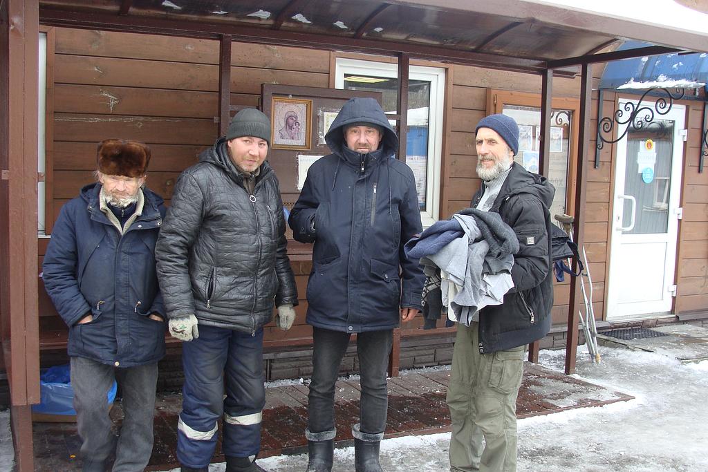 Волонтеры, представители приходского молодежного объединения храма готовят и ежедневно раздают горячие обеды для бездомных. Продукты жертвуют прихожане. В день удается накормить 15-30 человек.