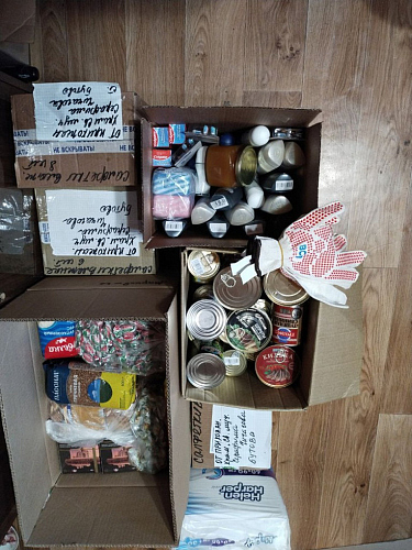Также были переданы средства гигиены и продукты питания, собранные прихожанами храма.