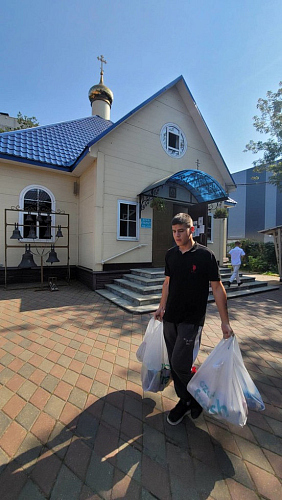 Волонтеры, представители приходского молодежного объединения храма готовят и ежедневно раздают горячие обеды для бездомных. Продукты жертвуют прихожане. В день удается накормить 15-30 человек. Во время благотворительных обедов бездомным раздается материал о Православной вере, о спасении, о том как начать новую жизнь во Христе. Также проводятся духовные беседы и читаются молитвы, в рамках миссионерского проекта «Свет Христов просвещает всех».