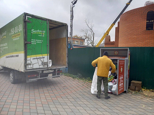 В течение месяца отгружались вещи из установленного на территории храма бокса-контейнера для сбора одежды, в рамках акции «Доброворот». Контейнер регулярно пополняется вещами, которые приносят жители района и прихожане храма.