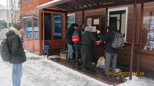 В феврале 2023 года социальной службой храма священномученика Серафима, митрополита Петроградского в Южном Бутове, по благословению настоятеля храма иерея Максима Глухих, была оказана помощь бездомным людям, нуждающимся в горячей еде.