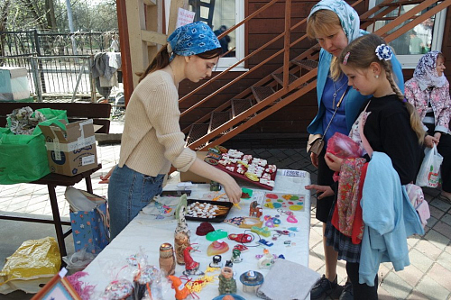 Ярмарка была подготовлена и организована преподавателями Воскресной школы и молодежным активом храма. Вырученные от продажи пасхальных сувениров и поделок средства пойдут на строительство храма.