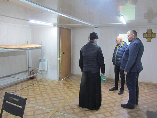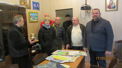 Настоятель храма пригласил присутствующих во временный храм, где рассказал о его строительстве, о подвиге священномученика Серафима, митрополита Петроградского, в честь которого будет построен основной храм.Далее настоятель храма рассказал о церковно-приходской деятельности, показал Воскресную школу храма.