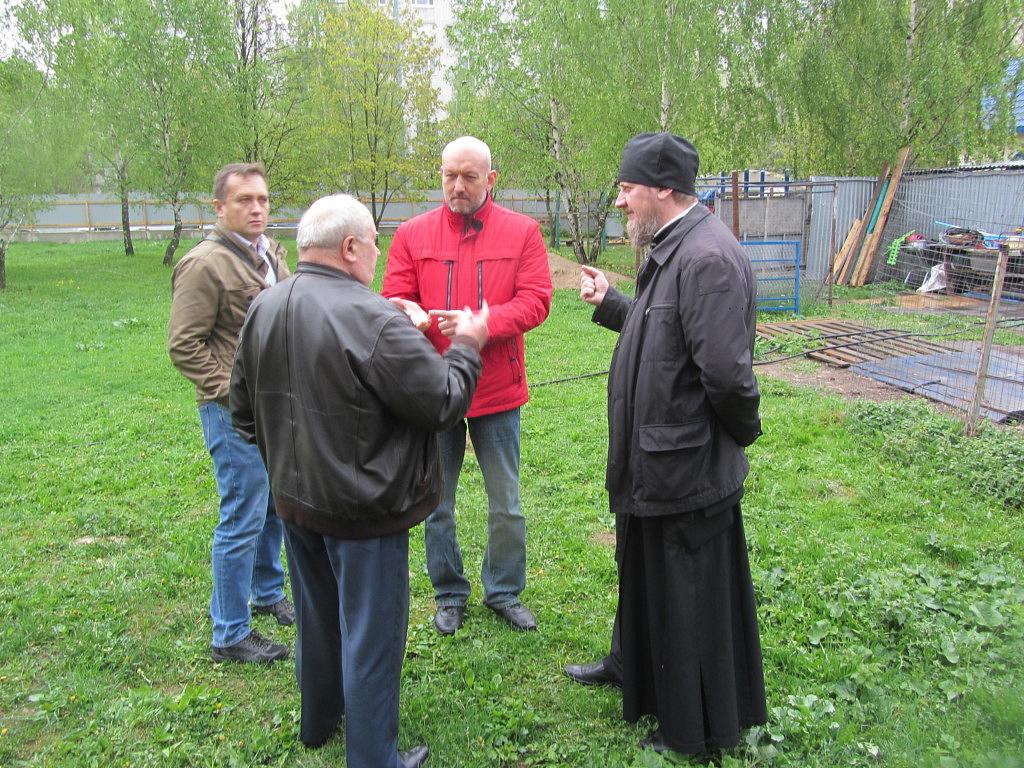 17 мая 2022 года на территории храма прошла встреча настоятеля храма, иерея Максима Глухих, иерея Сергия Онга, клирика храма, референта управляющего Юго-Западного викариатства по строительству храмов, с представителями генподрядчика, представителями"Единой службы заказчика" Московской Патриархии и с главным архитектором проекта Римшей Д.А.