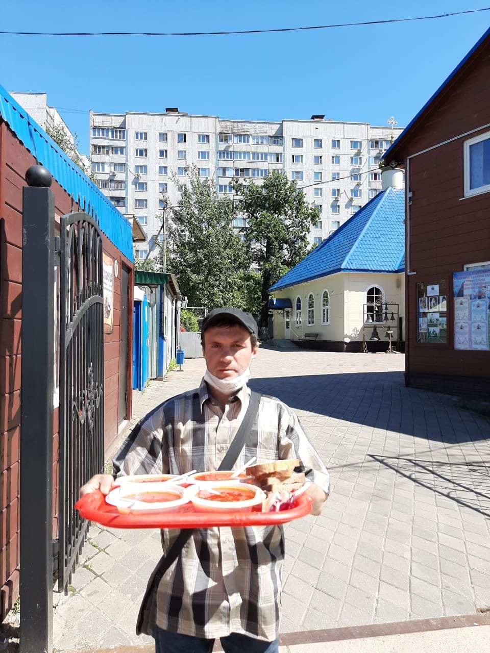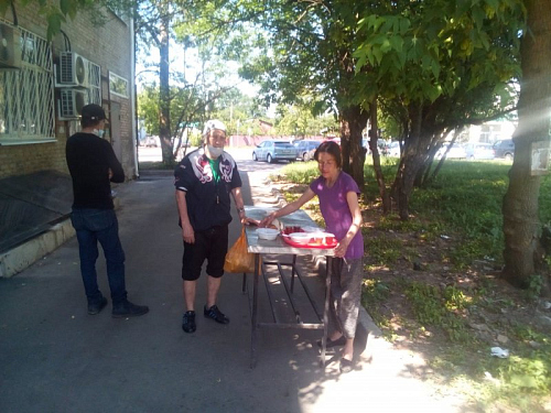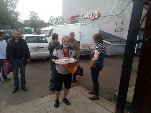 При этом с бездомными волонтеры проводят беседы о Православной вере, пред трапезой совершают молитвы, соблюдая санитарные нормы и социальную дистанцию.