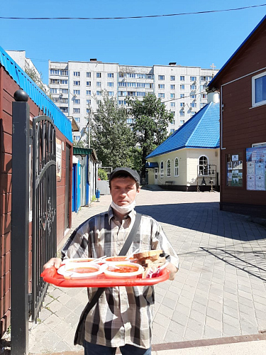 Также по благословению настоятеля, в условиях пандемии оказывается помощь бездомным людям, нуждающимся в горячей еде. Волонтеры храма ежедневно раздают горячие обеды для бездомных. В день удается накормить 10-18 человек. Еда раздается за территорией храма в одноразовой посуде с соблюдением всех санитарных норм и дезинфекции.