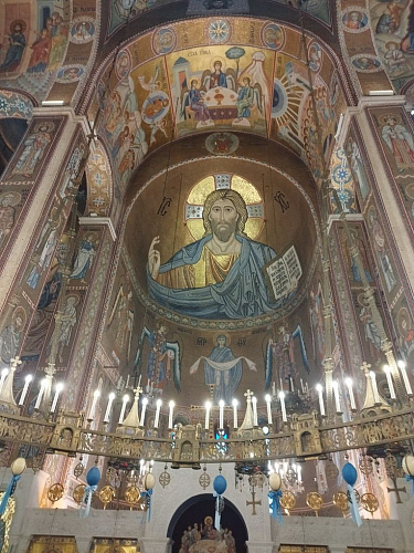 Гости увидели великолепные мозаики, фрески и образы, выполненные в византийском стиле, познакомились с историей создания храма.