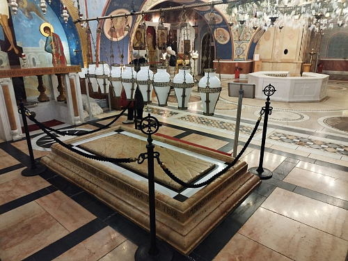 Паломники поклонились репликам христианских святынь - яслям Рождества Христова, приложились к камню Миропомазания, Гробу Господню, Гробу Пресвятой Богородицы и другим святыням.