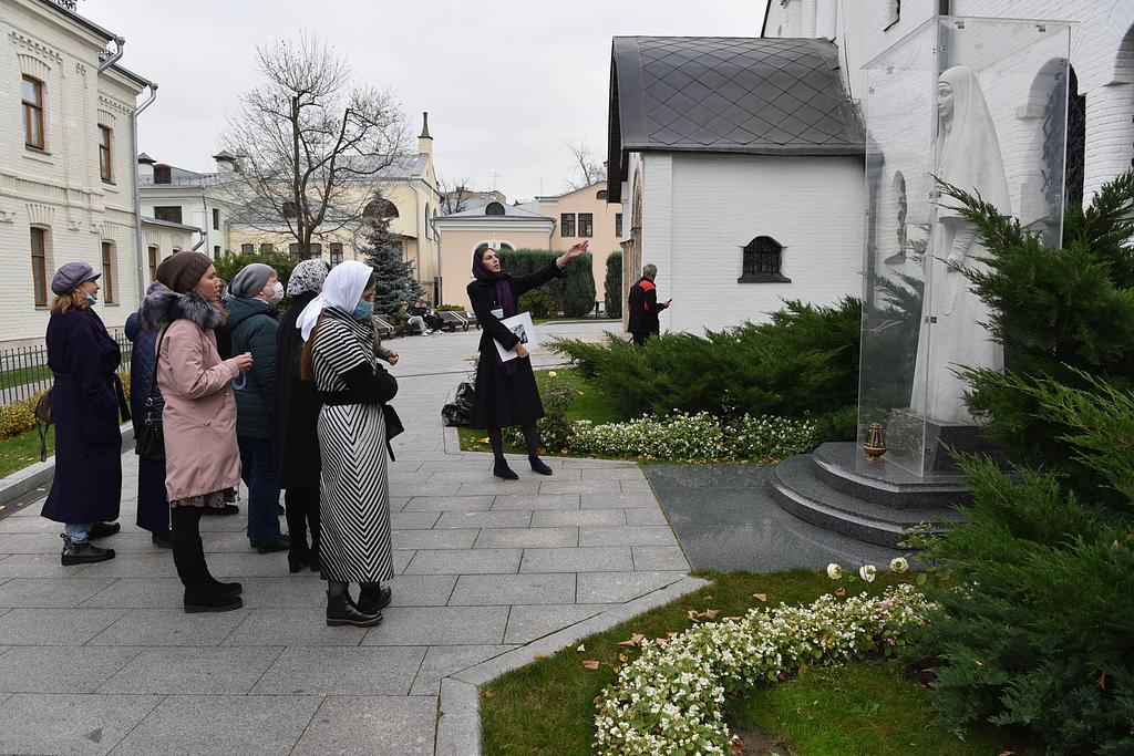 Паломники познакомились с историей основания Обители, услышали рассказ о ее первой настоятельнице - преподобномученице Елизавете Федоровне. В ходе экскурсии гости прошлись по великолепному саду, который восстановлен по фотографиям начала ХХ века, увидели Голгофу со Крестом, часовню и монастырские постройки.