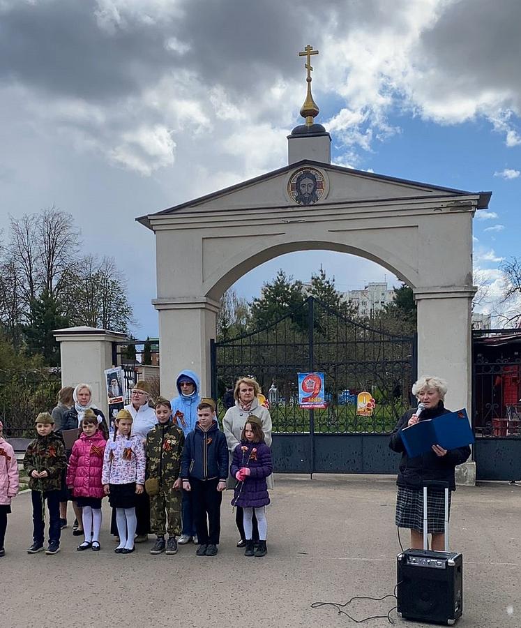 Праздничную часть продолжило выступление учеников Воскресной школы при храме и участников ансамбля «Веретёнце» под руководством Светланы Петровны Кузнецовой, которые подготовили стихи и песни о войне и о Победе.
