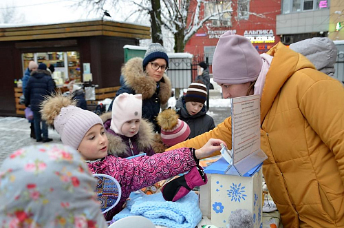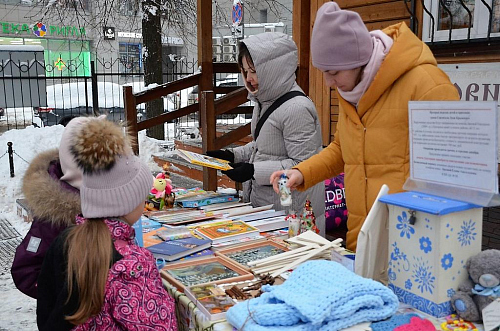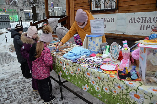 Во время проведения благотворительной ярмарки любой желающий мог приобрести понравившиеся поделки и сувениры, изготовленные детьми Воскресной школы и прихожанами храма, и тем самым оказать посильную помощь Екатерине. Свою собственную поделку - новогоднюю ёлочку - передала для воскресной ярмарки и сама Катя Басова.