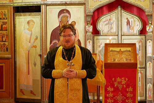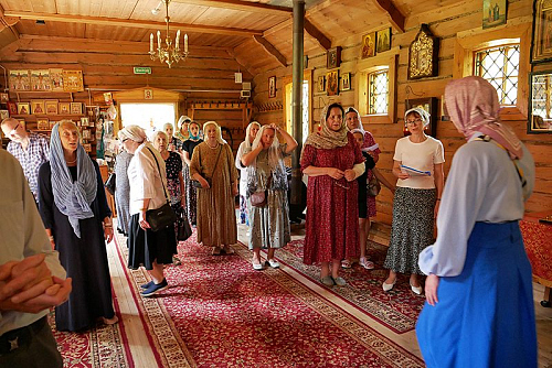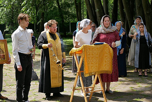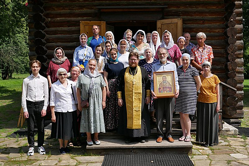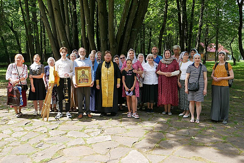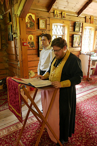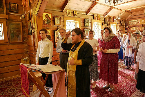 В небольшом деревянном храме, построенном в память святых Новомучеников и Исповедников Российских, был совершён молебен священномученику Василию.