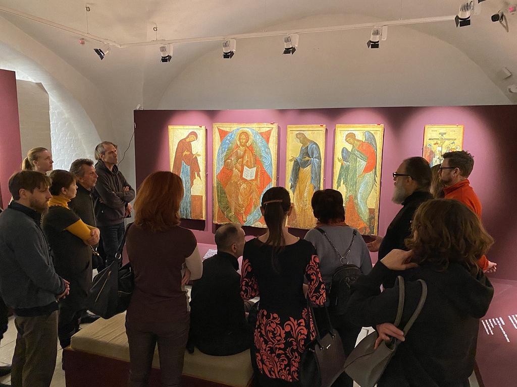 В первом зале гости увидели ценнейшие памятники музейного собрания, жемчужину коллекции - образ «Господа Вседержителя» первой половины XIII столетия и уникальный крупноформатный образ «Спаса Нерукотворного» второй половины XIV века.
