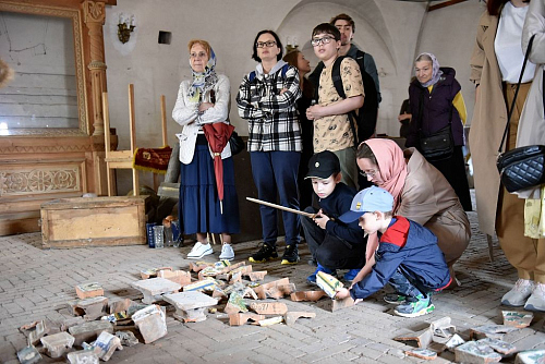 Паломники услышали увлекательный рассказ об истории Крутицкого подворья начиная с XIII века. Крутицы — это живая история в центре Москвы, тут давали клятву князь Пожарский и гражданин Минин, тут содержался протопоп Аввакум и Александр Герцен.