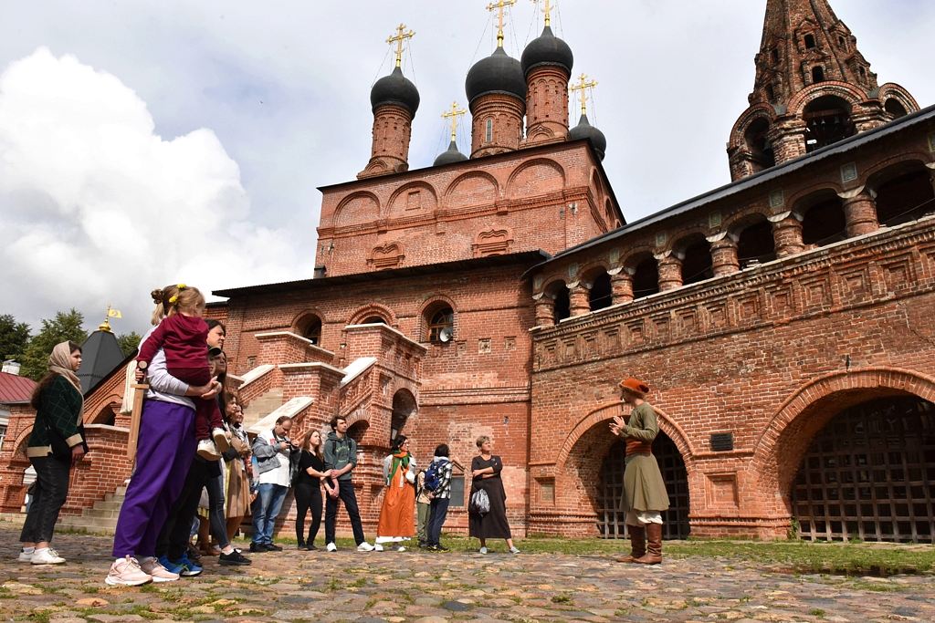 На главной площади гид Павел рассказал интересные факты о жизни в Москве с XVI по XX века на примере Подворья, о том, как развивался город и где находился первый деловой центр XVII века.