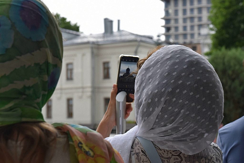 Затем паломники посетили храм иконы Божией Матери "Всех скорбящих Радость" на Большой Ордынке. Первые упоминания о храме прп. Варлаама Хутынского «в Ордынцах» относятся к 70-м гг. XVI в. В XIV в. здесь находилась дорога, ведущая в Золотую Орду. Кроме того, «ордынцами» называли русских пленников, выкупленных у монгольских завоевателей. Существует предположение, что местность, где стоит храм, была отдана им для постройки домов. В 1683-1685 гг. на месте деревянного был выстроен каменный храм Спаса Преображения. В 1688 г. состоялось прославление хранившейся в нем иконы Божией Матери «Всех скорбящих Радость», особо чтившейся особами царствующего дома.