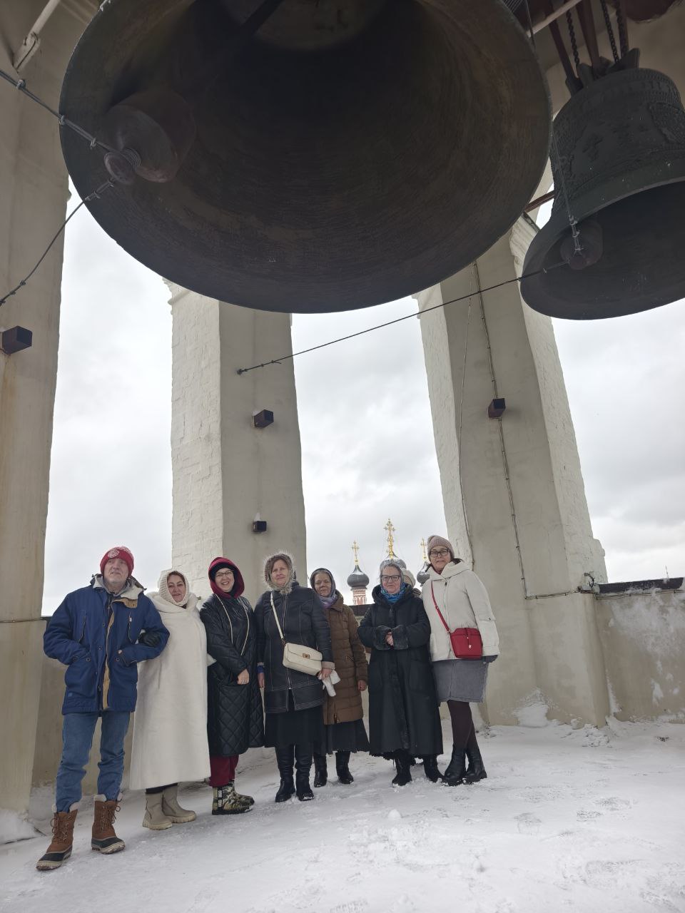 Паломники смогли осмотреть шесть монастырских храмов, подняться на колокольню и постоять под восьмитонным колоколом «Святитель Петр».