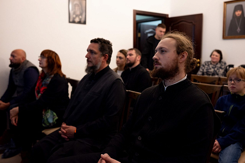 16 ноября 2025 года после вечернего богослужения в храме Всех преподобных отцев Киево-Печерских в Старых Черёмушках состоялась вторая встреча из цикла бесед, подготовленных доцентом кафедры филологии Московской духовной академии кандидатом филологических наук Александрой Евгеньевной Соболевой. Предваряя разговор на тему «История церковнославянского языка XI–XVII веков, или Давайте всё переведём?», настоятель храма священник Алексий Ишков пожелал собравшимся в гостиной провести воскресный вечер с пользой для души.