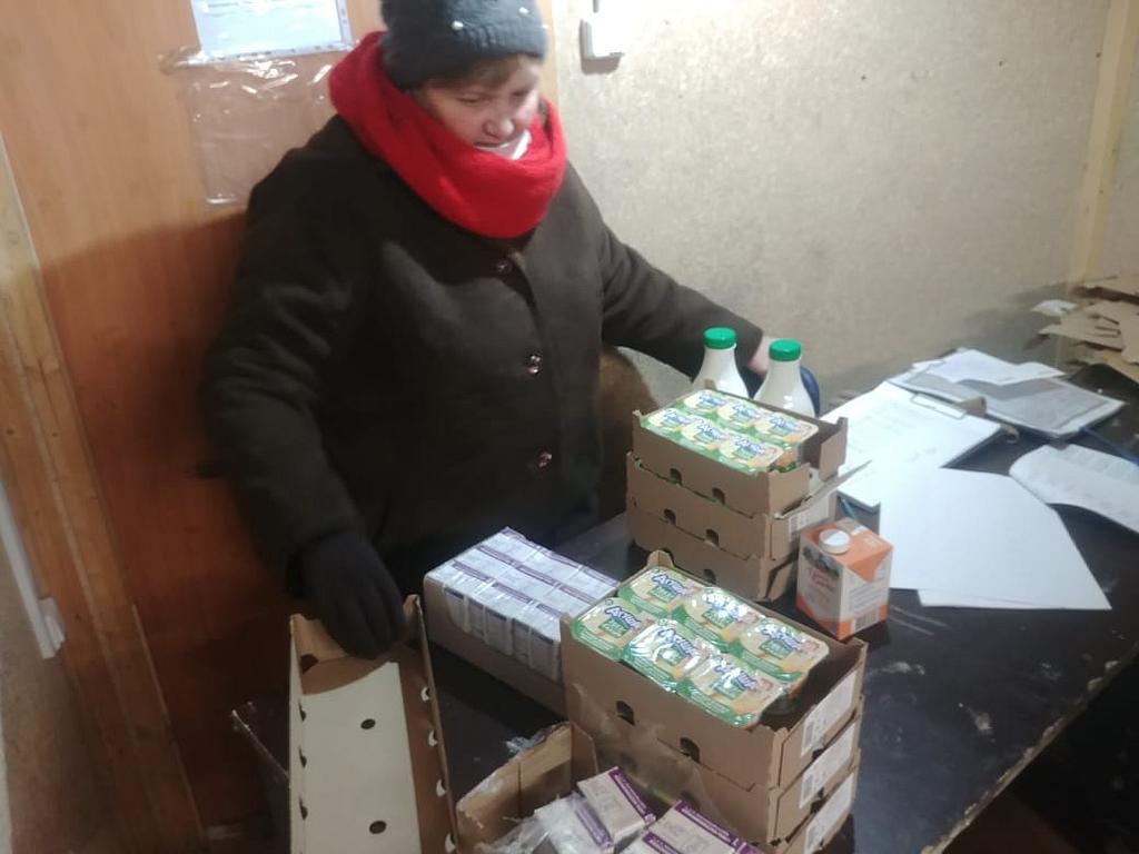В этот день продуктовую помощь получили 182 семьи, в которых воспитывается 580 детей. Йогурты, ряженка, творожок, кефир, молочные смеси, хлеб – 1730 кг молочной продукции волонтеры сформировали в продуктовые наборы на 845 человек.