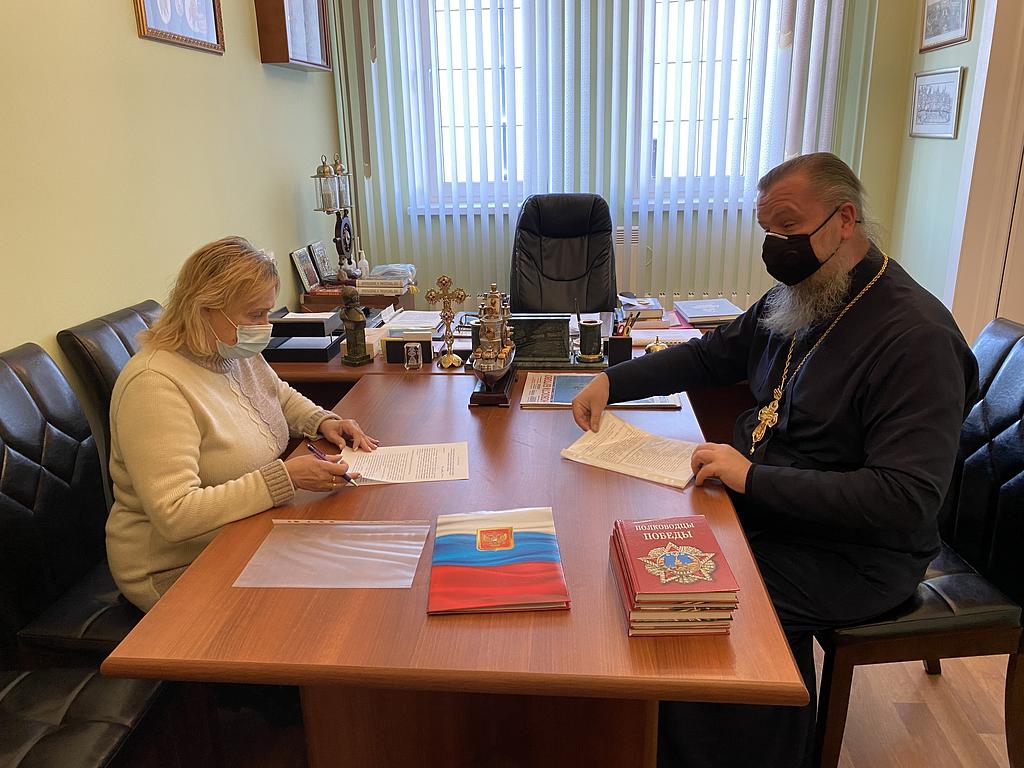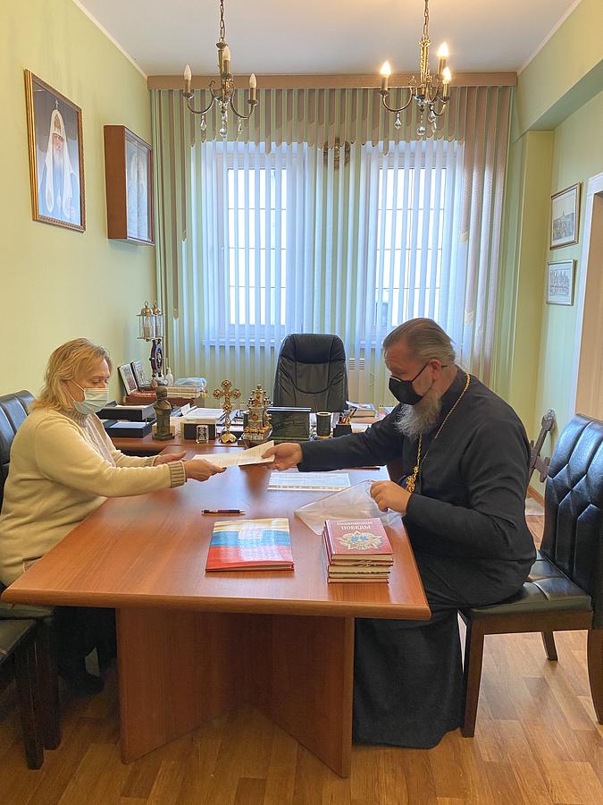 Настоятель передал в Совет ветеранов новую литературу о Великой Отечественной войне, вышедшую в Издательстве Московской Патриархии.