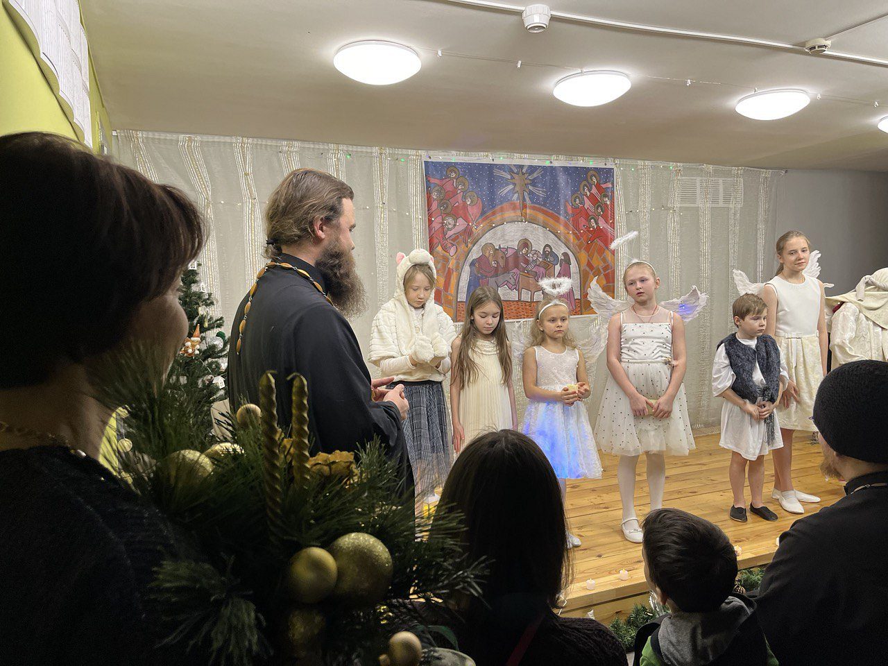 Настоятель храма иерей Николай Алешин тепло поблагодарил ребят и родителей, принявших активное участие в организации и оформлении прекрасной постановки, которая содержала главные Рождественские ценности любви и добра, а также вручил всем детям Рождественские подарки.