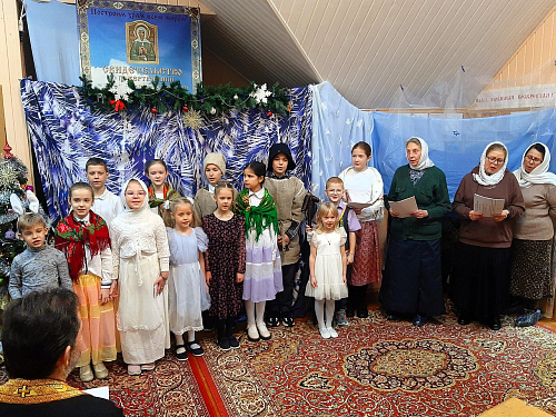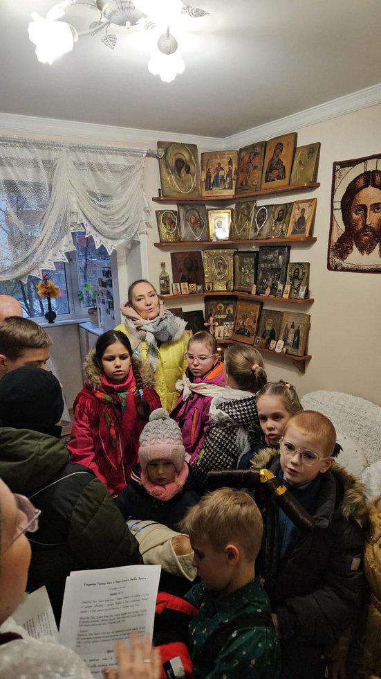 После концерта было организовано чаепитие. А затем, по святочной традиции, ребята и родители в рождественских костюмах отправились Христославить - делиться радостью праздника с прихожанами Храма. Прозвучали колядки и песни, а радушные хозяева отблагодарили христославов угощениями.