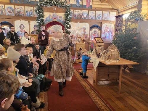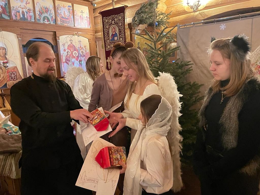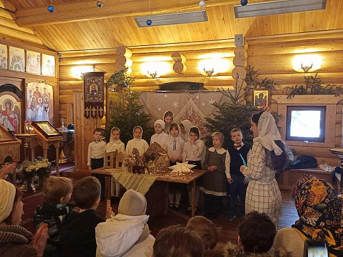 Зрители сами стали непосредственными участниками кукольного представления. Под руководством талантливых педагогов воскресной школы Батарчуковой К.П. и Григорьевой О.А. воспитанники порадовали гостей исполнением рождественских песен и представили поучительную историю-спектакль «Лесные дары», как лесные звери отправились поклониться Иисусу Христу в Вифлеем.