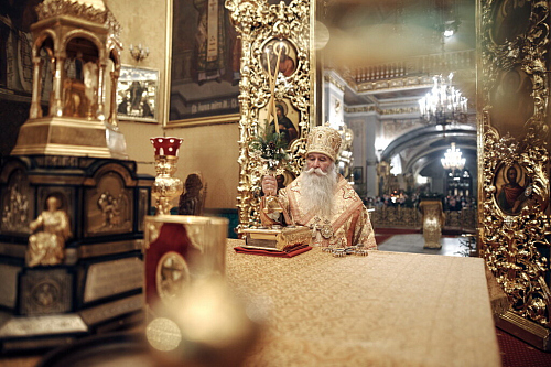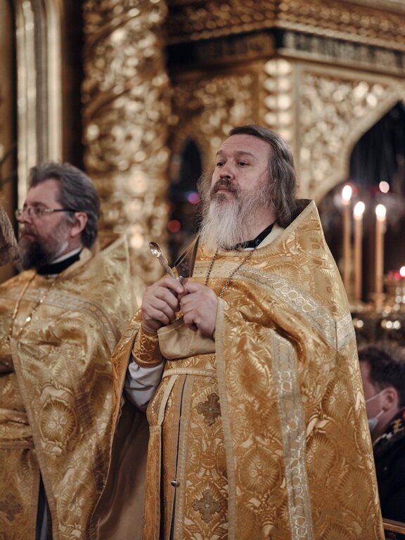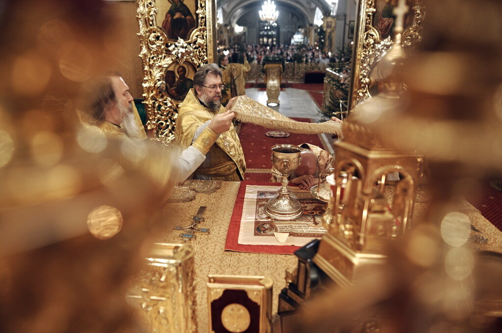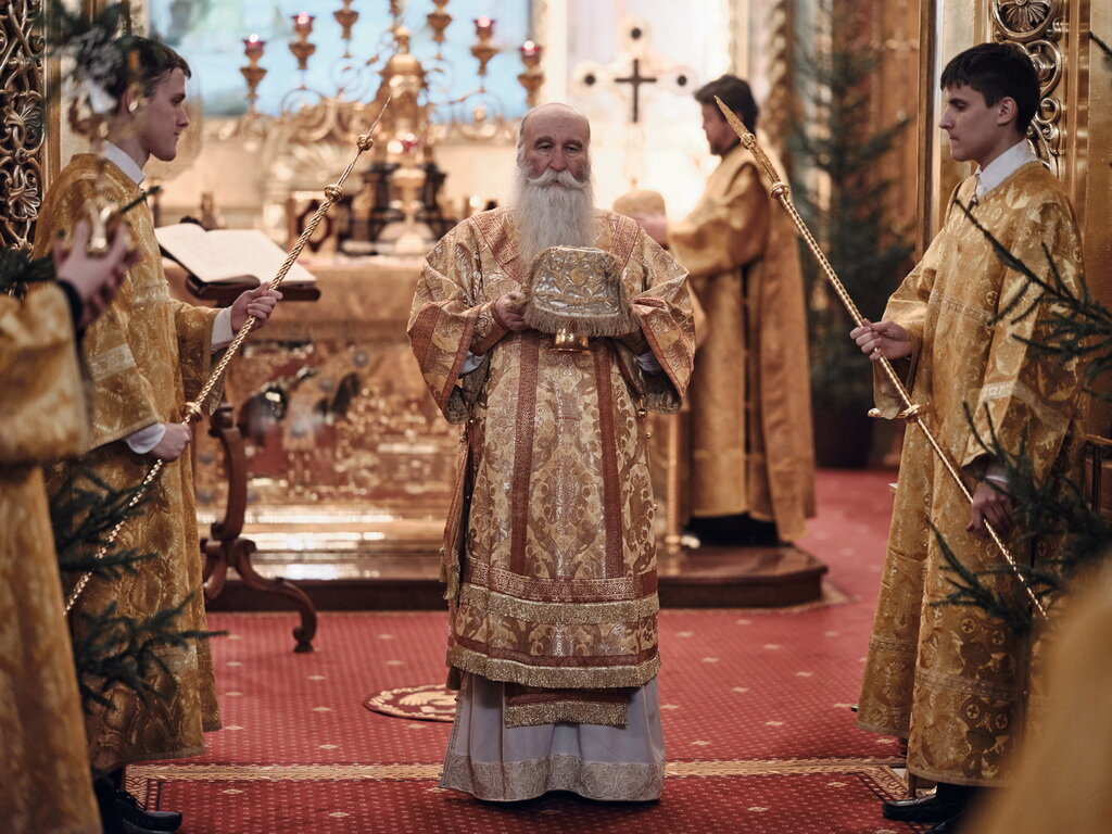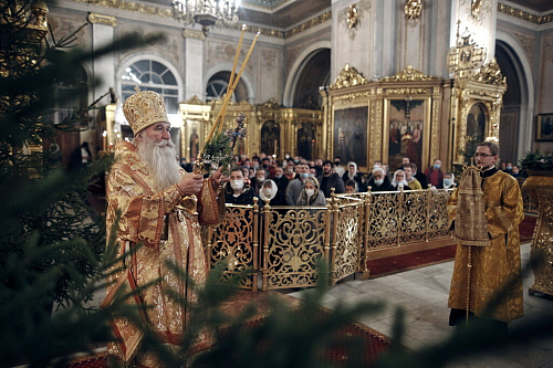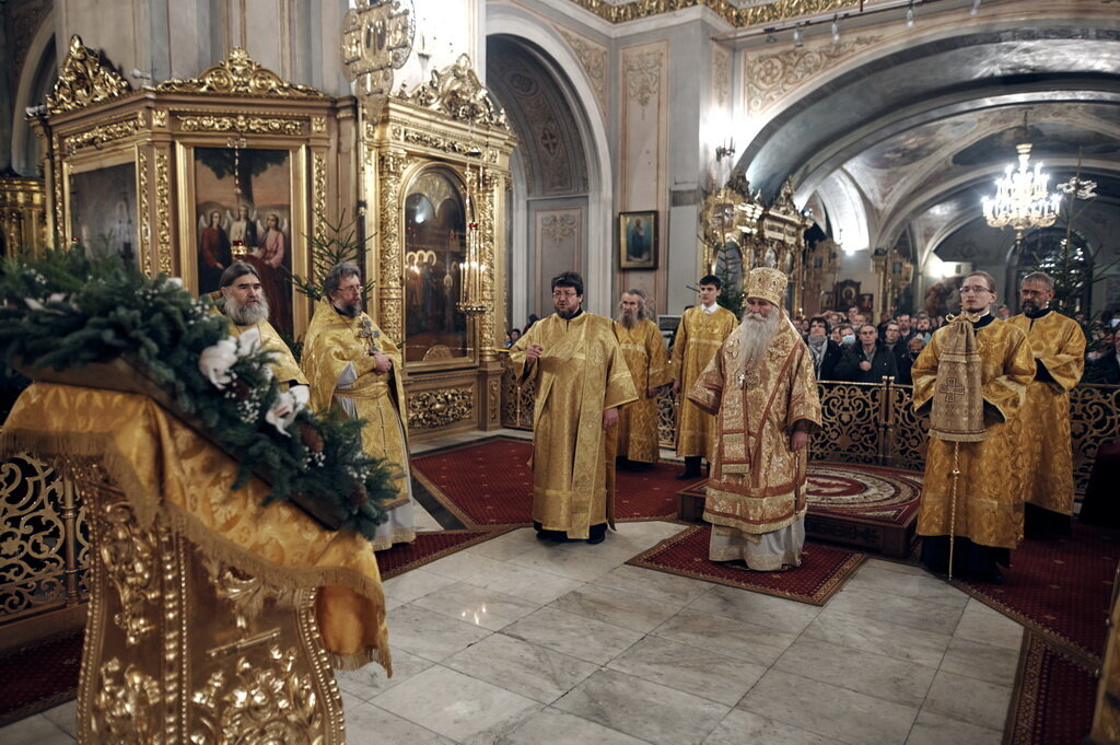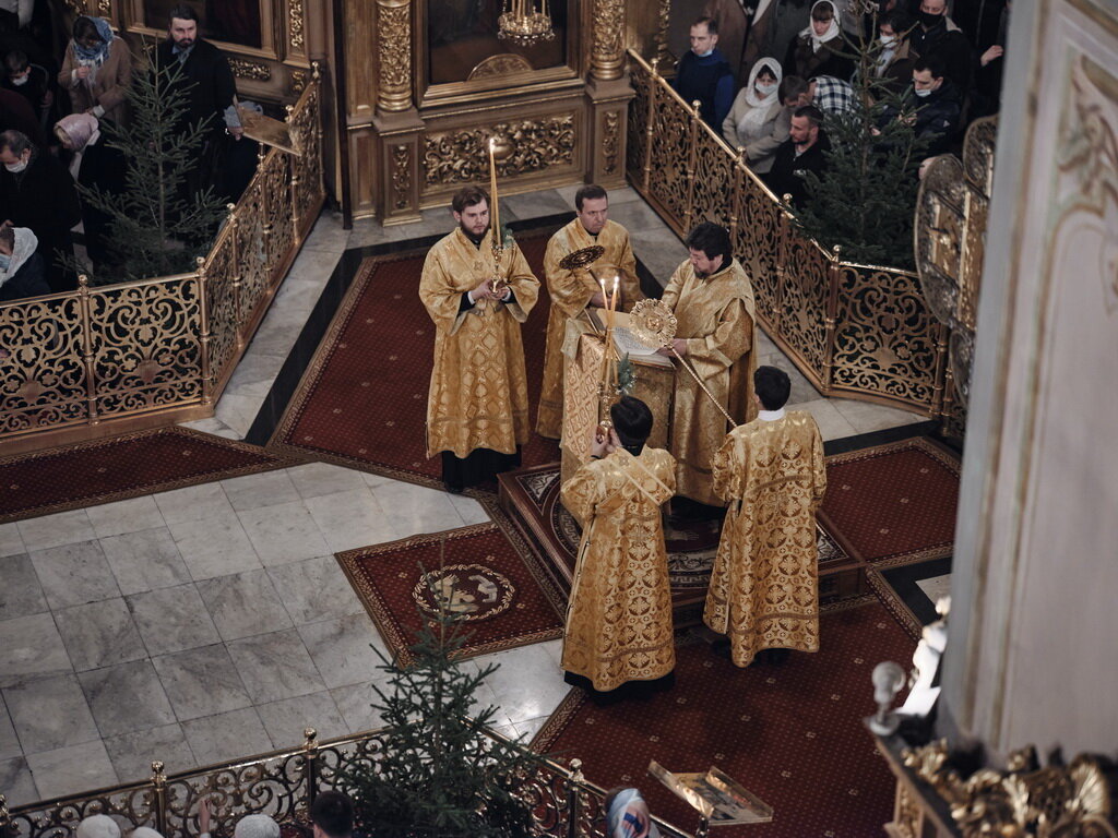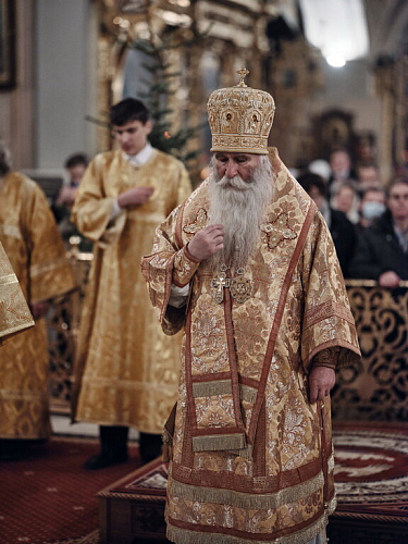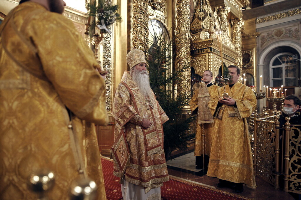 В ночь с 6 на 7 января 2021 года, в праздник Рождества Господа Бога и Спаса нашего Иисуса Христа, епископ Дмитровский Феофилакт совершил Божественную литургию святителя Иоанна Златоуста в Богоявленском кафедральном соборе в Елохове в городе Москве .