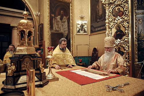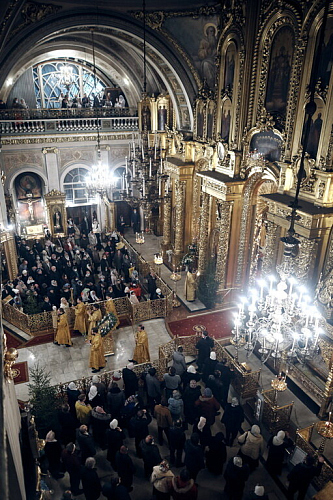 Рождественское послание Святейшего Патриарха Московского и всея Руси Кирилла архипастырям, пастырям, диаконам, монашествующим и всем верным чадам Русской Православной Церкви огласил протоиерей Борис Обрембальский.