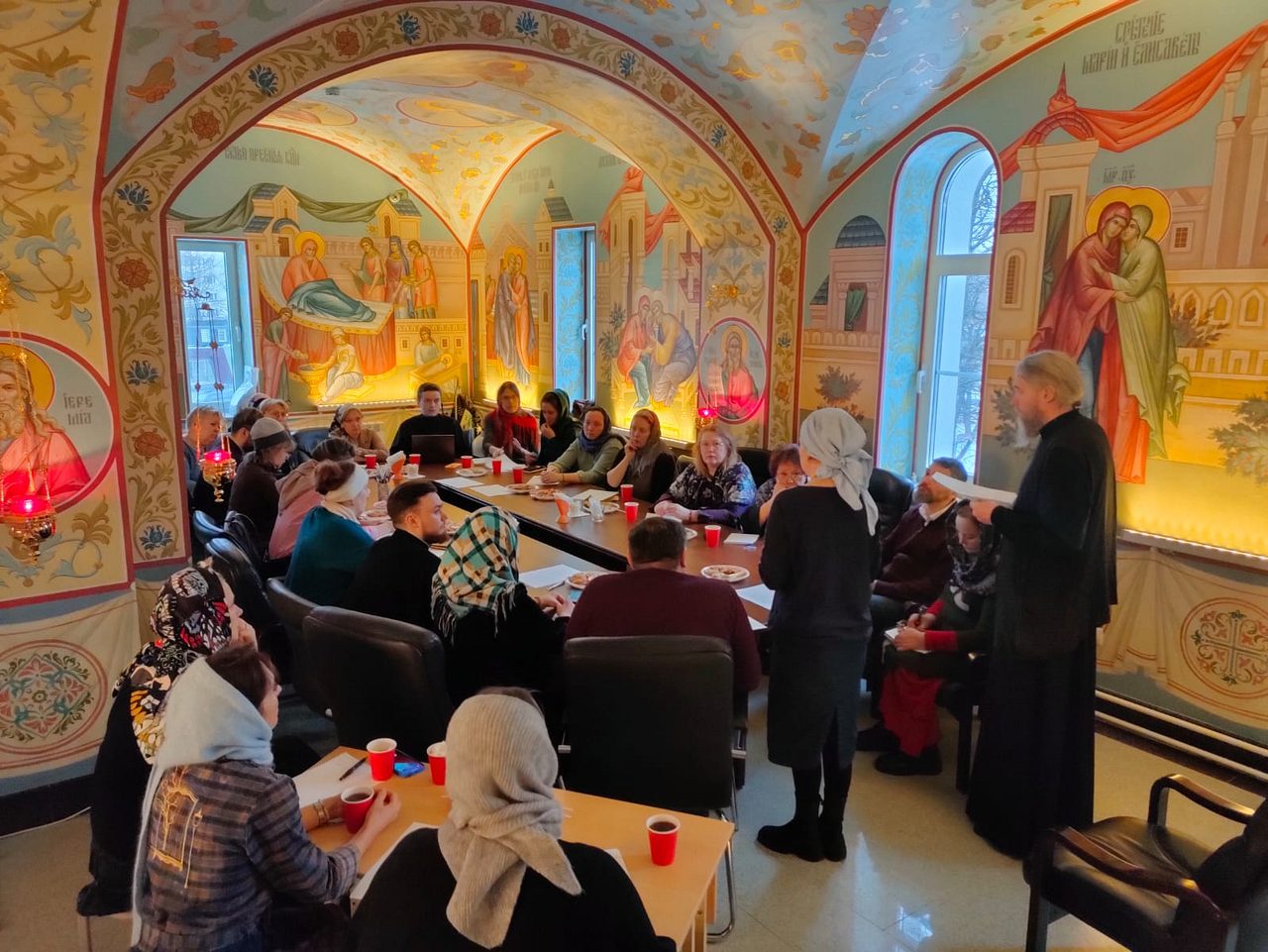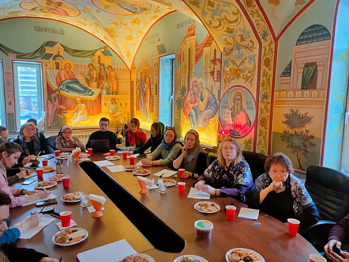 По благословению Епископа Раменского Алексия 10 апреля 2025 года в рамках годового плана Центра обмена опытом состоялась итоговая встреча Директоров и заинтересованных преподавателей воскресных школ Юго-Западного викариатства в стенах каменного храма «Отрада и Утешение» на втором этаже.