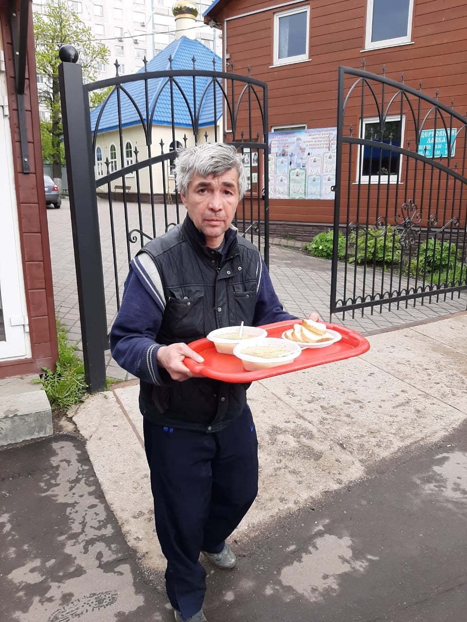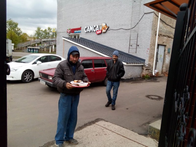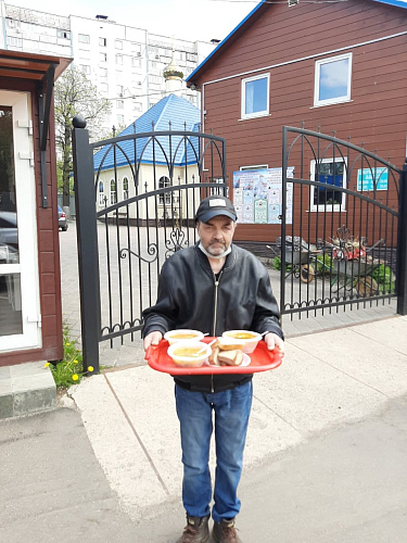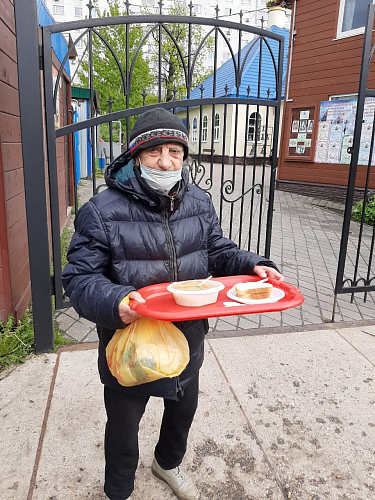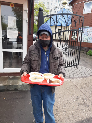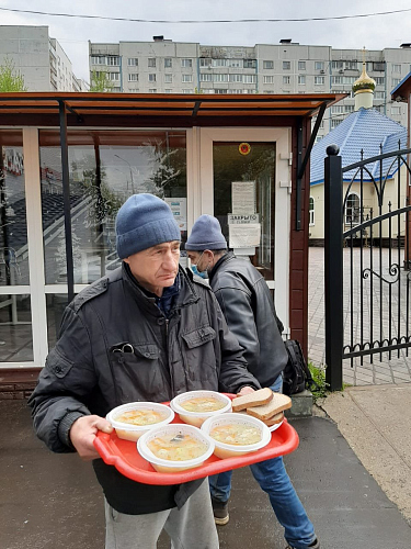 При этом с бездомными волонтеры проводят беседы о Православной вере, пред трапезой совершают молитвы, соблюдая санитарные нормы и социальную дистанцию.
