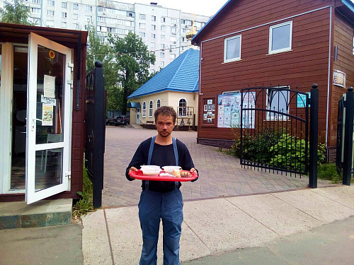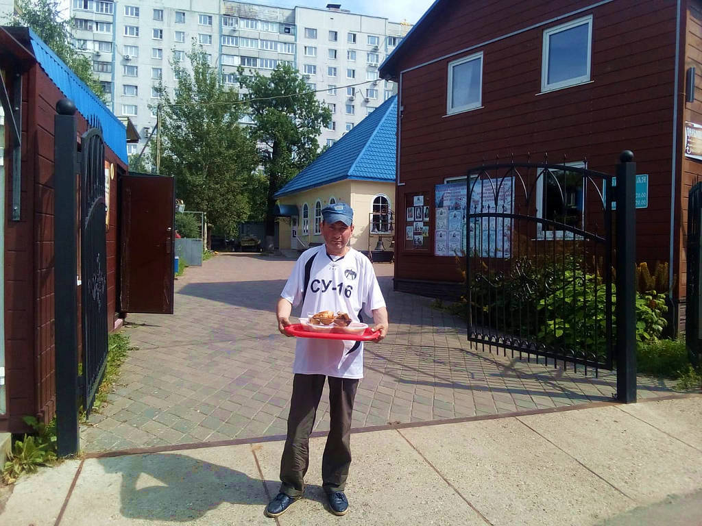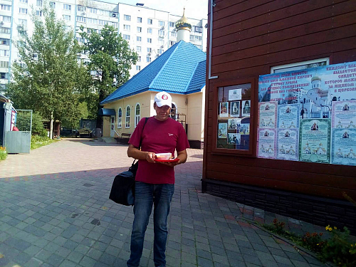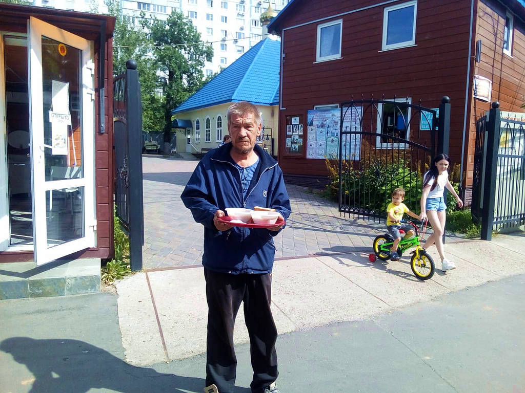 Также по благословению настоятеля, оказывается помощь бездомным людям, нуждающимся в горячей еде. Волонтеры храма ежедневно раздают горячие обеды для бездомных. В день удается накормить 10-18 человек. Еда раздается за территорией храма в одноразовой посуде с соблюдением всех санитарных норм и дезинфекции.