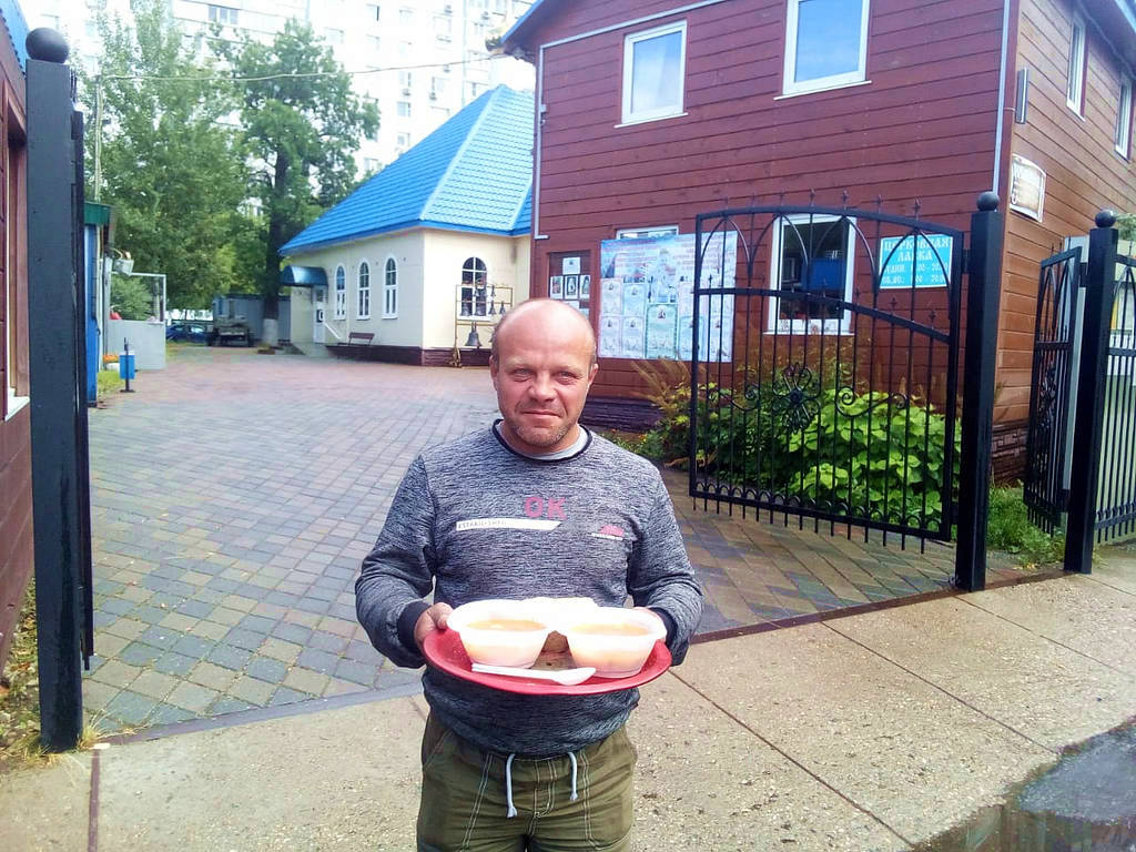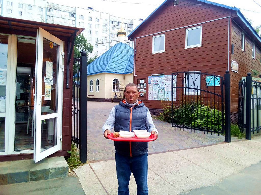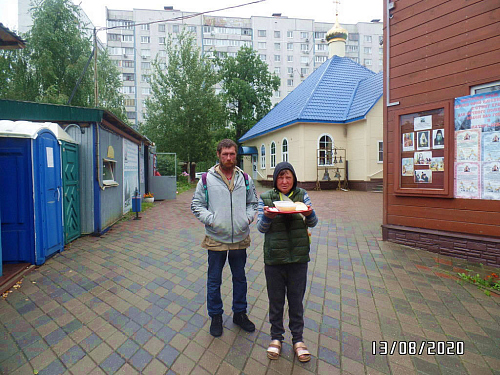 При этом с бездомными волонтеры проводят беседы о Православной вере, пред трапезой совершают молитвы, соблюдая санитарные нормы и социальную дистанцию.