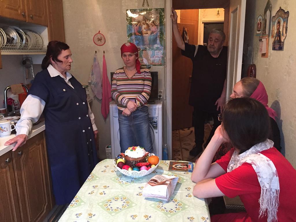 24 апреля и 25 апреля 2022 года, в день Светлой Пасхи Христовой и в первый день Светлой седмицы, по благословению и.о. настоятеля храма святой великомученицы Анастасии Узорешительницы в Теплом Стане иерея Димитрия Борсука, социальная служба храма совместно с молодежной группой поздравили подопечных на дому: пожилых, тяжкоболящих, инвалидов, а также нуждающиеся многодетные семьи.