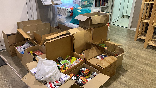 Совместными силами были собраны и отгружены коробки с лапшой и кашей быстрого приготовления, крупами, консервами, печеньем, сухарями, пряниками, сладостями, сгущённым молоком, чаем, кормами для животных, вещами, средствами личной гигиены, хозяйственными товарами, памперсами для взрослых, пленками, влажными салфетками и другими необходимыми товарами.