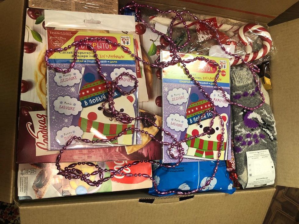 В посылке были отправлены сладости, рождественские игрушки, а также средства гигиены, общим весом 9 кг.